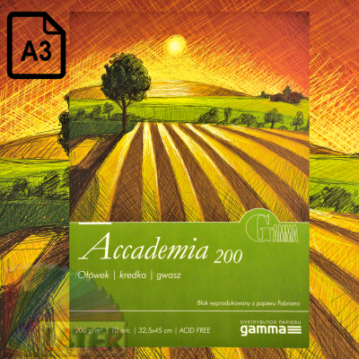 Opis produktu Accademia 200 blok do ołówka kredki i gwaszy A3 200g/20ark